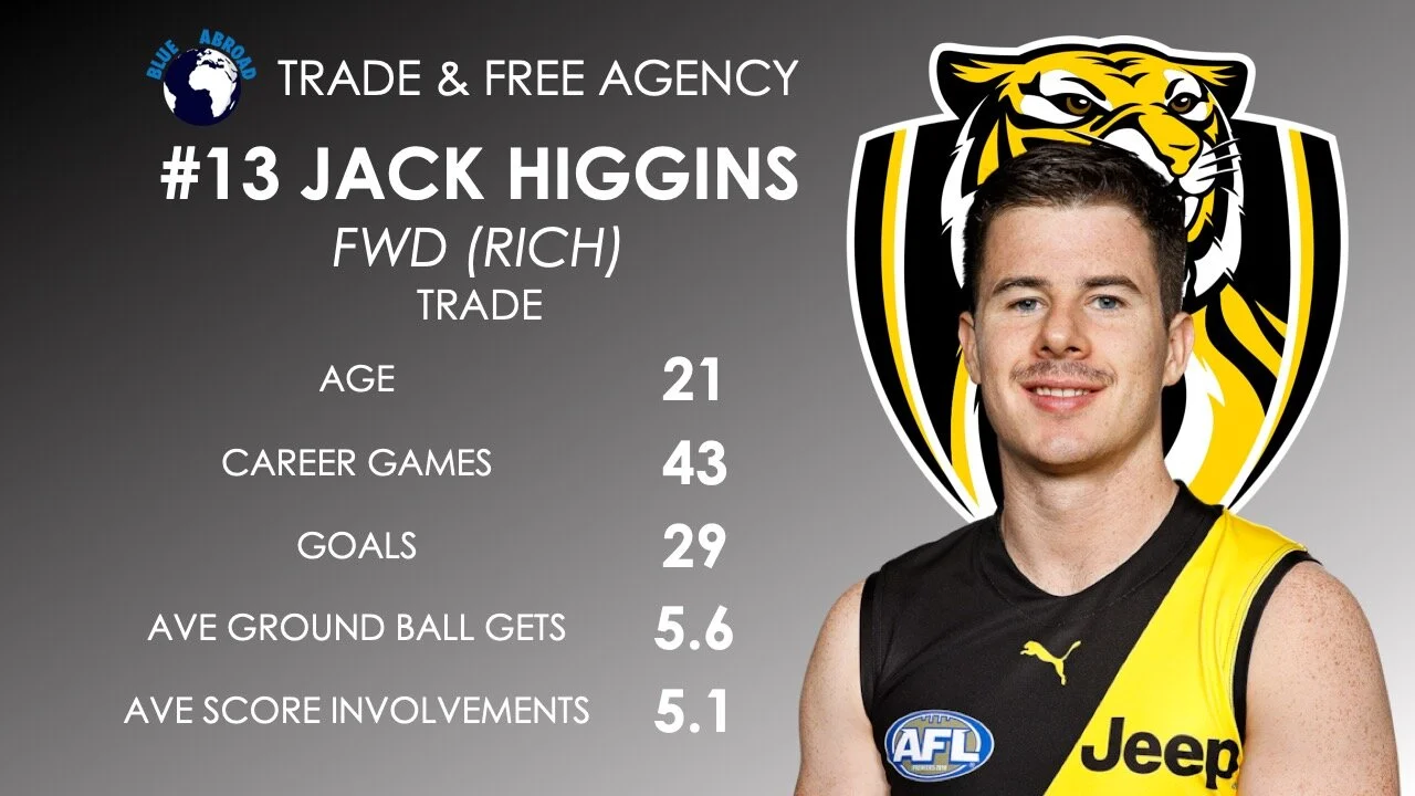 This forward craft is exactly what Carlton should be chasing. At the feet of Charlie Curnow and Harry McKay, Higgins would thrive.